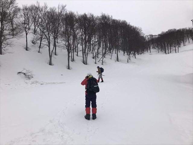 “トンネルを抜けるとそこは雪国だった“山スキー合宿に登山班として参加しました。六日町は二メートルもの雪が積み上げられ、山々はどっさりと雪をかぶり、幾重にもコントラストを作り、雪をまとって私たちに迫ってきた。天気は明日から崩れる模様。今日は運のいいことに雪や雨は降ってなく、予定を変更して本日中に女人堂あたりまで行こうとなり、八海山ロープウェー山頂駅10:30出発しました。翌日は悪天候で新潟の寺社仏閣巡りとなりました。