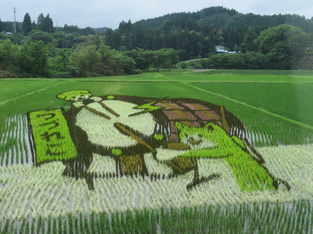 田んぼアートがまだ続きます。ドンドン🎶 秋田太鼓ですね
