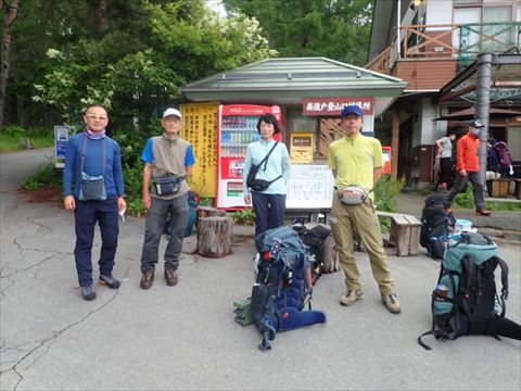 7/18; 赤岳鉱泉5:00ー中山乗越5:30―行者小屋5:40―阿弥陀岳7:10―中岳のコル7:40―行者小屋8:30―赤岳鉱泉9:10―テント撤営10:00―美濃戸山荘11:45―美濃戸口12:30(入浴)14:30(タクシー)-富士見駅