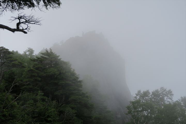これから登るニュウはガスの中