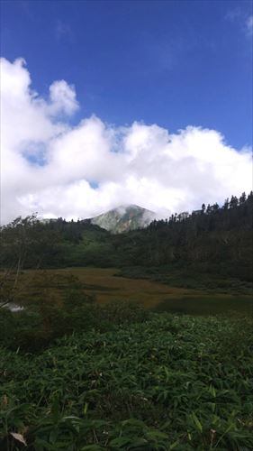 休憩した後に、軽い荷物で出発。遠くに火打山が見えます。
