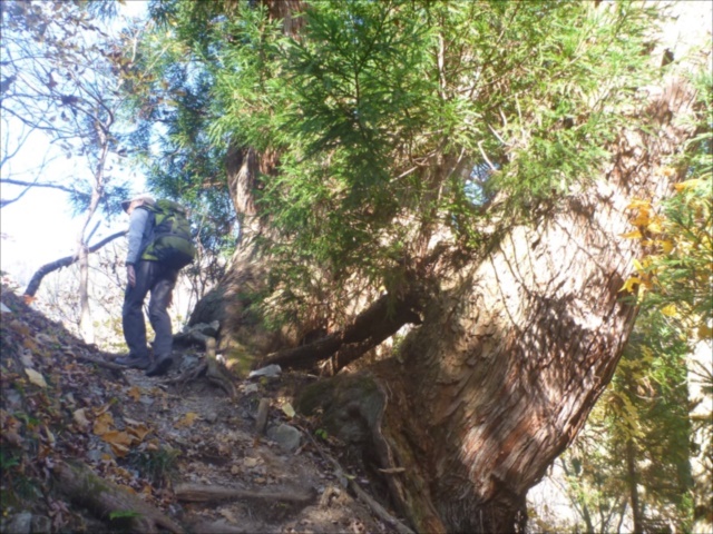 九十九折の道に立派な立山杉が立つ、登りは立山杉が楽しみ