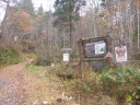 車通行禁止の林道に入った。樫の仲間の落ち葉が覆い隠しているが簡易舗装の道路はずいぶん壊れている。補修跡を見ると谷間の沢沿いにつけられたこの林道は何度も水害にあったと推測された。現在地を確認するため地形図に実線で記された歩道の分岐を探したが見当たらない。諦めて登る。休憩舎・駐車場に到着した。休憩舎・駐車場は当然ながら使われた様子がない。傍に古びた大仏山案内図がある。林道は先へ続いている。少し進むと看板や多数の目印がある小橋の袂の三叉路が大仏山登山口(ふれあいの森学習路登山口)である。なるほど舗装道路、川沿いとHP情報の要素に一致した。ナビでは到達できないわけだ。