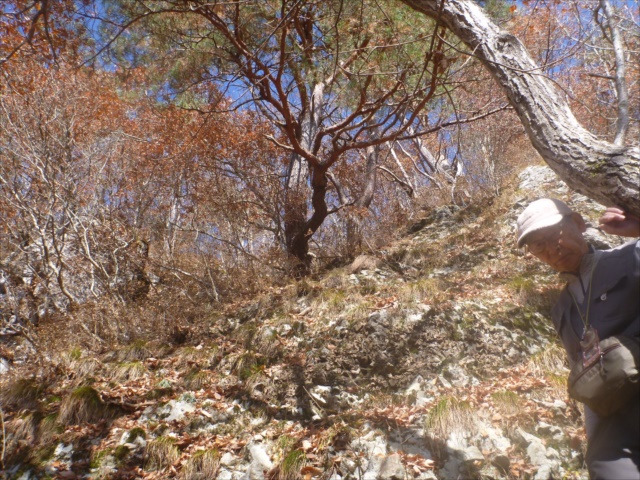 垂直に近く見える岩場、直登か巻くか