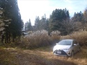 小田山公園駐車場から会津美里町へ向かう。インプットしたナビに従って久曾神さんが運転である。感謝!高尾嶺は昨日(11/18)登った銀山峠のすぐ南にある。市野集落で一般道から曲がりくねった細い車道(軽トラ道で廃道?)に入り道なりに辿って廃屋近くの場所に駐車した。見上げれば薄曇、青空もある。これが廃屋か?どうも大谷地溜池(貯水池)管理のための作業小屋としか思えない。見回しても過去の生活臭が覗える大谷地集落の廃屋はなかった。畑跡と思われる場所は一面が薄の薮だ。降車して地形図の破線路入口を探したが周りのどこにも見つからない。