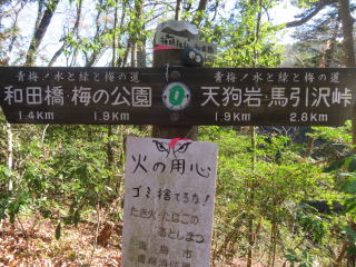 【コースタイム】 日向和田駅9::25 →和田稲荷神社9::40 →愛宕山分岐10::20 →要害山10:45 →和田町三角点 11::00 →天狗岩11::20 →赤ぼっこ11::50 ~13:00→馬引沢峠13:20 →明治橋バス停14::00