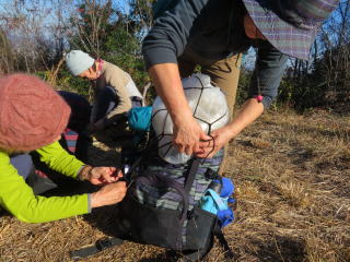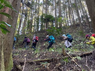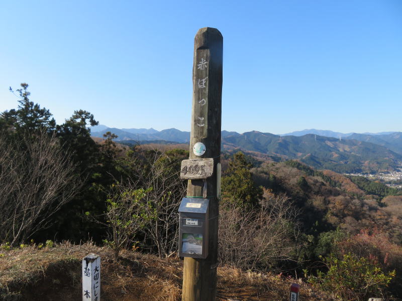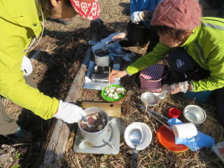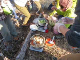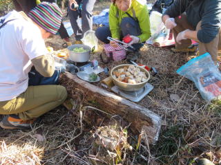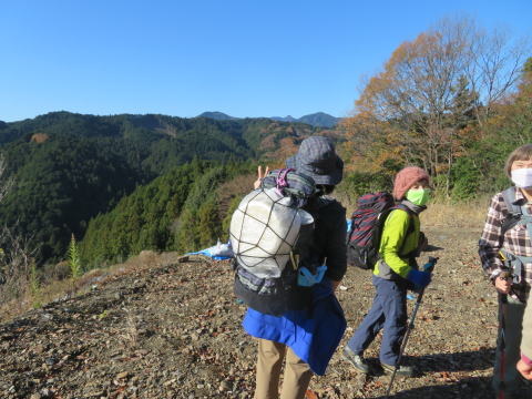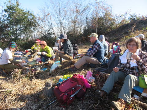 日向和田駅を出て、橋を渡り紅梅庵の先で、左に入っていく。 今日は天気も良く、雲ひとつない青空だ。 和田稲荷神社で手を合わせ、今日の無事の下山を祈願する。 そこから少し歩いて、山道に入る。落ち葉が積もって滑りやすい。気を付けて登る。 途中で少し開けた空き地があって、休憩をするために上がっていくと、下にはソーラーパネルがズラッと並んであった。こんな山の中にも増えている。 少しの登りと、少しの下りを繰り返しながら、天狗岩に着く。 展望が良く、日の出山から、御岳山、大岳山がみえる。 そこから少し歩いて、赤ぼっこにつく。 天狗岩と同じように、展望は良いが、少し山の形が違って見えて、 大岳山の形がはっきりわかる。 ここで久々の鍋を作る。 重い荷を担いで来てくれたリーダーや、 野菜を作って提供してくれた人、大きな鍋を担いでくれ人、 みんなありがとう!美味しいお鍋でした。楽しいお鍋でした。 お汁粉も小豆から煮て、持ってきてくれた。美味しい!ありがとう! ポカポカの日差しのなか、みんなで笑っていただくから、 何倍も美味しく感じるのかな! 後は緩やかな下り坂を下って、バス停に着く。青梅駅まで、10分。 無事に到着。無事に帰宅。 ありがとうございました!(記:S/A)