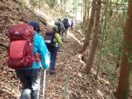 落ち葉の道を登ります
