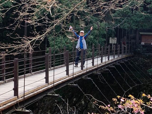 氷川小橋を渡るMさん