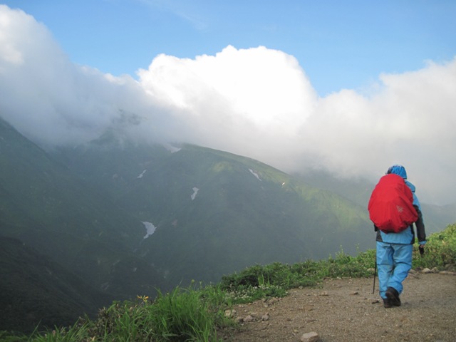 この景色が朝日連峰縦走の醍醐味です・・昨日以東小屋で泊まって良かったネ