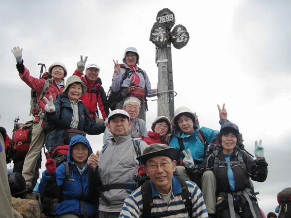 | 【コメント】 9月18日 7時36分北朝霞を出発、鈍行を乗り継ぎ、12時23分無人の松原湖駅に着く。 待っていたタクシー2台に分乗。運転手さんは「今年は暑すぎ雨もないのでキノコは全く採れない」とぼやいていた。45分程で本沢口に到着。苔むした針葉樹の林道を1時間20分ほど歩き本沢温泉に着いた。小屋組とテント組に別れる。ここの目玉は何と言っても「日本一高所にある通年営業の露天風呂」だ。入浴料¥600。沢筋の河原に5〜6人入れば満杯の湯船があるだけ。何の囲いもない。丸見え。男性は明るいうちに入る。勇気ある新座の女性群は暗くなって、大胆にも全員の入浴写真に残した。一体誰が撮ったのだろう? 夕食は6時、消燈は8時。小屋の食事や接客はそれほど良くなかった。特にテント組には無愛想だったとか。(5,200歩) 9月19日 朝食は6時。7時本沢温泉出発。晴れ風弱し 気温12℃。8時5分夏沢峠 10時20分硫黄岳到着、頂上からの噴火口の眺めは壮観で凄い。美濃戸隊と交信するが繋がらない。11時40分横岳山頂。広い稜線で昼食。北アルプスの槍ケ岳、乗鞍山、御嶽山、中央アルプス、南アルプス、更に東には奥秩父、浅間なども クッキリ・ハッキリ見渡せる。 ここから台座の頭まで、夏はコマクサや高山植物のお花畑らしい。 12時40分三叉峰、クサリや梯子の登り降りが続く。13時40分地蔵の頭。 携帯電話で阿弥陀岳頂上の美濃戸隊と交信。互いに手を振り合う。目の前に赤岳の雄姿が迫る。このまま天望荘か頂上小屋に泊りたいな〜。 ここから地蔵尾根を行者小屋に降りる。急な下りで梯子や鎖場の連続だ。所々に石造りのお地蔵さまが置かれている。中には現代的なイケメン顔をしたものもある。 15時50分、行者小屋到着。何と人の多いことか、それも若い山ガールが多いのに感激。お友達になりたいなー。 小屋の接客はとても良く気持ちいい。トイレもキレイ。こんな山小屋が増えているようだ。昔の山小屋しか知らない者にとっては隔世の感がある。(11,000歩) (記録:TK) |