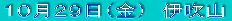 2010年10月27日(水)〜29日(金) 前夜発 (参加者) CL・奈良在住の会友T/Kさん(伊吹山を除く) SL・K/T O/S O/T T/Y K/I |