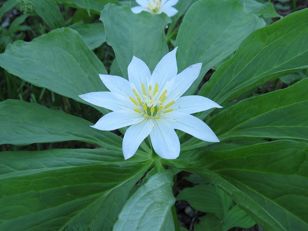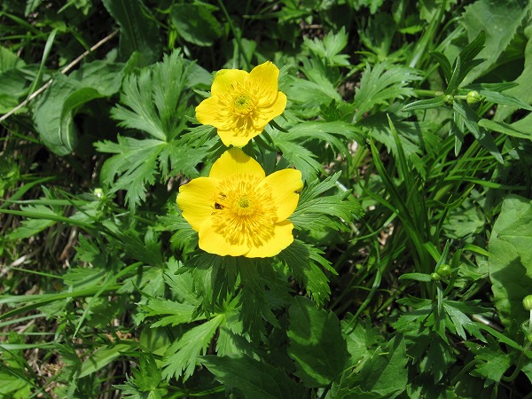 | 【コメント】 白山は、24年前に親子3人で登ったときと同じコース、砂防新道〜観光新道を歩きました。この上ない好天に恵まれて、たくさんの花々と展望を楽しみながら進みます。室堂周辺にはお目当てのクロユリが咲き、山頂一帯に点在する池は、残雪の中に真っ青の水を湛えて静かに横たわっています。下山道ではニッコウキスゲの群落とヒメサユリ・・・10時間余の行動も苦にならないほどでした。 翌日の荒島岳は低山ゆえ、暑さに閉口しながらの歩きでした。ブナ林の中を木段が続き、上り下りとも気が抜けません。山頂で眺めた白山の大きさと風格に圧倒され、深紅のアザミの美しさに癒されました。 (記:Y.S) |