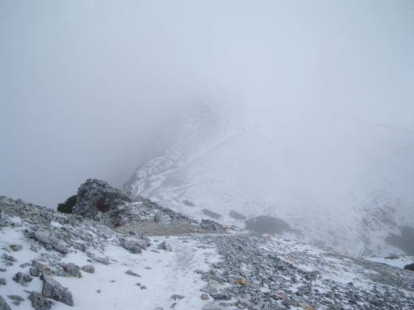 稜線は時折ガスで見えなくなる