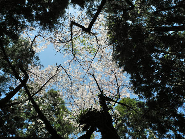 見上げると青空のした桜が誇らしく咲いていた