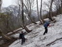 笈ケ岳山頂8:30〜50 岩底谷の頭9:15‐‐1640mピーク10:00〜11:45‐‐冬瓜平13:00(テント撤収)〜TKとIS1640mピーク へ出発13:55‐‐TFピックアップ15:45‐‐TKとIS冬瓜平に戻る17:15(テント泊) |