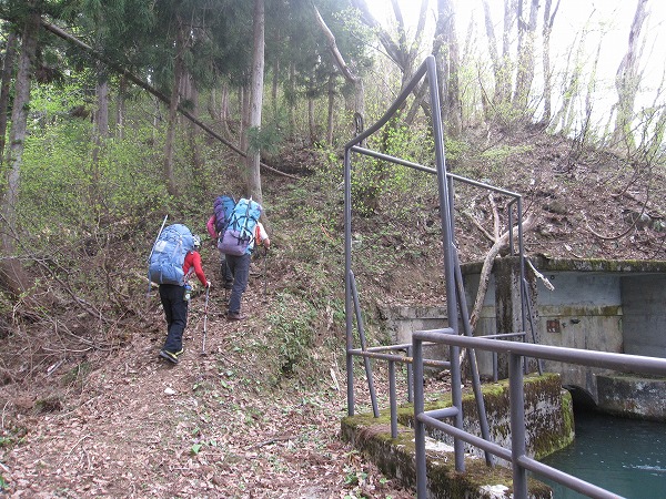 上りり詰めたところの貯水池から登山道が始まります