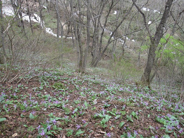 下山口手前で出会ったカタクリの大群落