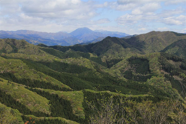 鳴神山頂上からは日光男体山をはじめ見晴らしが良い、ヤマザクラも