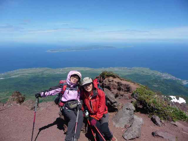 利尻山頂(北峰) 青い空と青い海、礼文もすぐそこに見えます