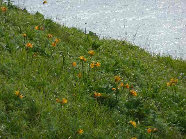 朝の散歩でぺシ岬へ 斜面に咲くエゾカンゾウ