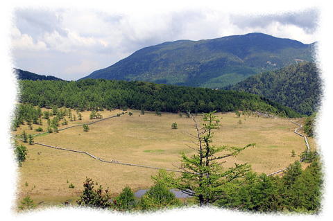 数万年前噴火した三方ケ峰(2040m)の火口が池の平湿原となったそうである。