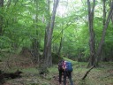 | 【コメント】 一昨年から皇海橋コースを計画しては天候不順で何度も中止し、今年こそと思っていたら林道崩壊のため不通となり、予定を大幅に変更して庚申山から鋸山を経るコースにしました。 庚申山荘は週末にもかかわらず、宿泊者が私たち以外に2人だけという静けさ。山荘前に鹿が2頭現れました。ロングコースなので早朝出発。庚申山への登山道は迷いやすい個所があって気が抜けません。鋸山の稜線歩きは小さなピークをいくつも越えてゆき、鋸山へ近づくにつれ鎖場やロープが現れ、転落しないよう注意が必要です。皇海山の山頂は木立に囲まれて地味で奥深い一角。孤高の雰囲気がなんとも好きです。 山頂からの下りにかかった辺りで、予報に違わずポツリと雨が降り出したので、下山コースは六林班峠にとりました。笹薮はきれいに刈り払われた直後で、歩きやすくて助かりました。庚申山荘への分岐で危うく標識を見落としそうになり、要注意。雨の中、峠から山荘へ山腹を延々と巻き、沢を何度も渡ります。2ヶ所大きく崩れた所にはロープが張っていましたが、ズルッと滑り落ちそうで危なかったです。 14時間近い長丁場でした。ずいぶん前、11月に来た時は最後の林道を月明かりで歩いたのを思い出しました。 (記:Y.S) |