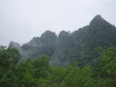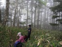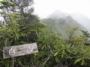 | ↑ガスが一瞬晴れて、皇海山が顔を出しました(鋸山の稜線から) |