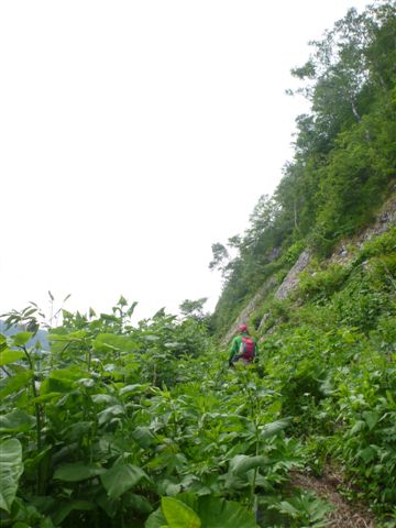30残雪斜面から崖下巻き道に