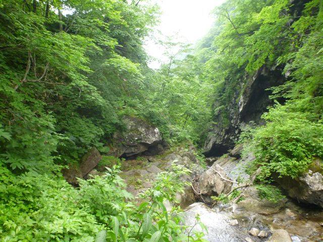 38沢に滝が出現、左岸大巻きに