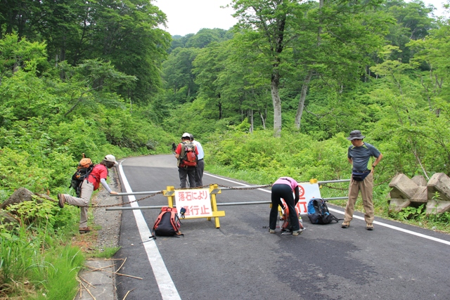 7/3 伏野峠手前の落石通行止の