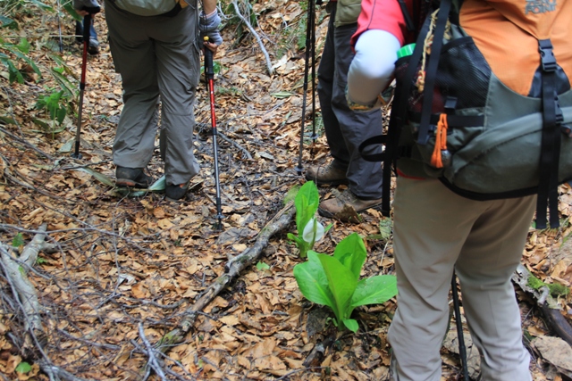 登山道の真ん中にミズバショウ