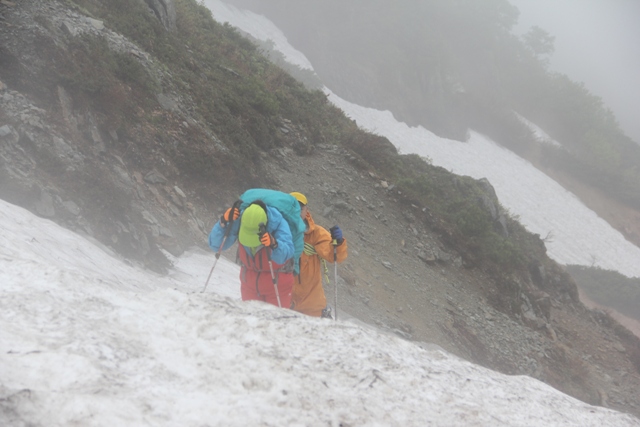 針ノ木峠直前、あと数歩で雪渓が終わります