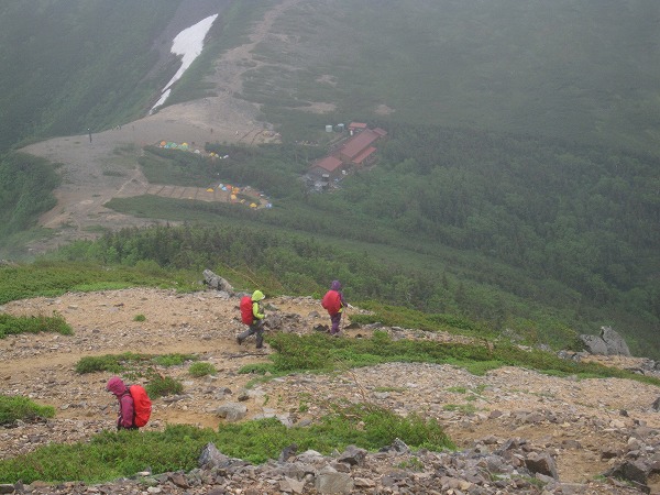 常念小屋が見えました。気持ちがグンと弾みます