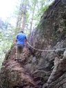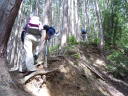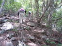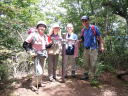 | 【山行記録】 丁度15年前の夏、山の会に入って間もない2人ともまだ可愛かった頃のこと、Mさんと初めて計画を立ててこの奥多摩にやってきました。武蔵五日市駅からバスに乗り、鍾乳洞入口から歩き始め、滝を巡りながら大岳山を踏み、鋸山から奥多摩駅と下りました。とてもいいコースだったけど異常に暑かったし疲れたし、ロングなので大変だった思い出があります。途中の滝と山ユリの香りに癒されながらも、それなりに楽しかった山行でした。 今回はその思い出コースを再び歩いてみようと仲間3名を誘いやってきましたが、なんと先日の大雨で大滝が崩壊、通行止め。アー、残念、あの滝コースを歩きたかったんです〜〜。 仕方なく急遽変更し養沢神社からサルギ尾根〜高岩山を登りることにしました。今でも覚えてますが、あの時このコースを歩こうかと調べたコースです、サルギ尾根は作業道で地図に無かった道です。なんと今は地図に載っているではありませんか・・・。いつから? よし!この道から行こう〜と即決。しかし、取り付きは急登、昭文社の地図のコースタイム以上に時間はかかるし展望はないし・・・それに暑いし・・・みんな汗ダラダラ。 高岩山山頂にやっと到着しました。ここから新高岩山(此処は展望が良かった)はすぐでしたが既に13時を過ぎてしまったので、下山も急遽変更し、御岳山から下る事にしました。これも初めてのコース。鎖あり梯子あり、それなりにスリルもあり、楽しいコースでしたが、アップダウンもあり疲れました。 「夏山縦走に向けての訓練!そう思えばなんてことはないでしょうー!」リーダーMちゃんも15年もたつと素晴らしいものです。みんなで大笑いした楽しい山行でした。 先々週は御前山を歩きましたが、奥多摩は以前より若者のハイカーもが多くなったみたいです。結構若者が歩いていました。残念ながら思い出コースはあるけなかったけどまた計画を立てましょう。K |
