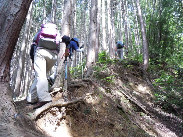 取り付きはなかなかの急登。既に汗がダラダラです。