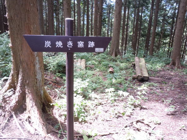 炭焼き窯跡の所には木製のベンチがある。