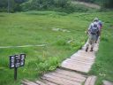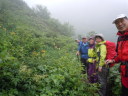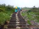 | 【コースタイム】 〔7/20〕 朝霞台(車)5:50→新座駅6:00→所沢IC6:15〜湯沢IC→苗場駐車場9:05着 駐車場9:05〜30→和田小屋10:00〜05→6合目10:40→雨具着ける11:15→下ノ芝(昼食)11:20〜40→中ノ芝12:15→上ノ芝12:34→小松原分岐12:50〜13:05→苗場山頂14:40→交流センター15:00(泊) 〔7/21〕 交流センター発6:50→神楽ケ峰8:10→中ノ芝8:55→下ノ芝9:43→和田小屋11:00→駐車場11:25 |