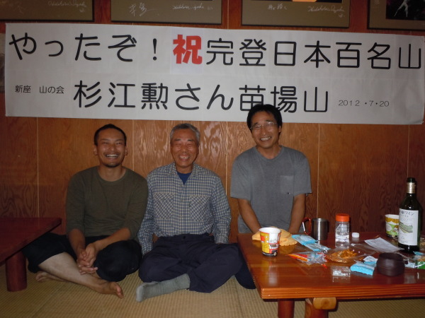 右は苗場山山頂ヒュッテの親方。左はここで働く格好いい〜青年。