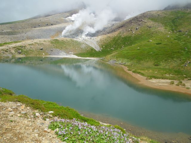 姿見の池と地獄谷の噴煙