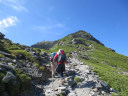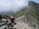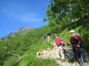 | 【期 日】 2012年7月27日(金)〜29日(日) 【メンバー 】 Y.S T.H I.H 【コースタイム】 7月27日(金) 新座駅6:51−甲府駅8:28−甲府発バス9:00−大樺沢出合11:00−登山口出発11:15 ― 白根御池小屋着14:20 7月28日(土) 白根御池小屋5:40−小太郎尾根分岐7:35−北岳肩ノ小屋8:20−北岳 9:30− 北岳山荘11:00−間ノ岳13:35−農鳥小屋15:05 7月29日(日) 農鳥小屋4:45−農鳥岳6:25−大門沢 小屋10:00−奈良田14:10−バス16:20− 下部駅17:00―甲府ー立川―新座駅19:30 【コメント】 一年前から計画していた白峰三山に登ってきました。 当初4日間で行く計画だったのですが、みんな健脚だったので、3日間で行ってくることができました。お天気に恵ま れ、全部晴天でした。1日目は白根御池小屋で泊りました。急な上りが続きましたが、コースタイムより早く小屋に 着くことができました。きれいな小屋でゆっくりと休むことができました。2日目は、いよいよ北岳に向かって登り始 めました。急な上りがずっと続きました。土曜日だったのでたくさんの人が登っていて、数珠のようにつながってい ました。北岳は2番目に高い山だけあって、登りがいのある山でした。頂上からの眺めがよくて、「よくぞ登ってきた」 と、感激に浸りました。次に登った間ノ岳も、どっしりとした素敵な山でした。農鳥小屋までの下りが荒れた道で苦 労しました。3日目は、朝早く出発しました。農鳥岳もどっしりとして素晴らしい山でした。北岳、間ノ岳がよく眺めら れました。奈良田までの下りは、長くて、大変でした。それでも14時過ぎに着き、温泉にゆっくり入って、帰ってきま した。三千メートルの山三山に登ることができ、満足のいく山行でした。 記:Y.S |