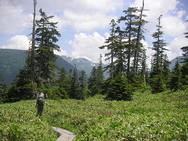 草原とシラビソの林を行きます