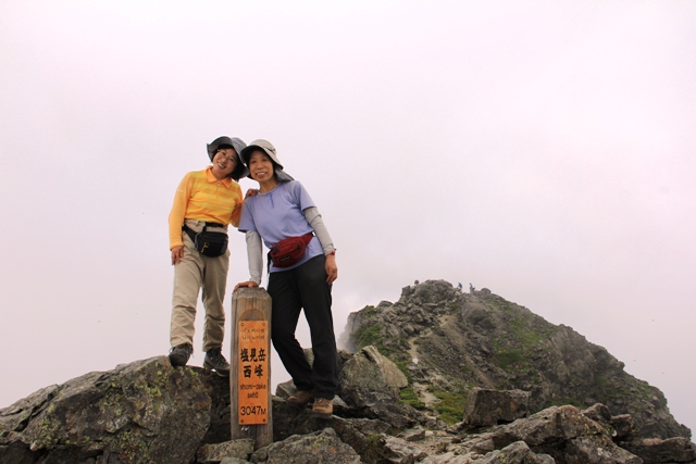 後方に見えるのが東峰です