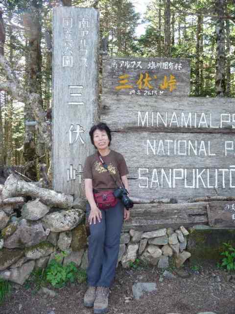 三伏峠の大きな道標の前で