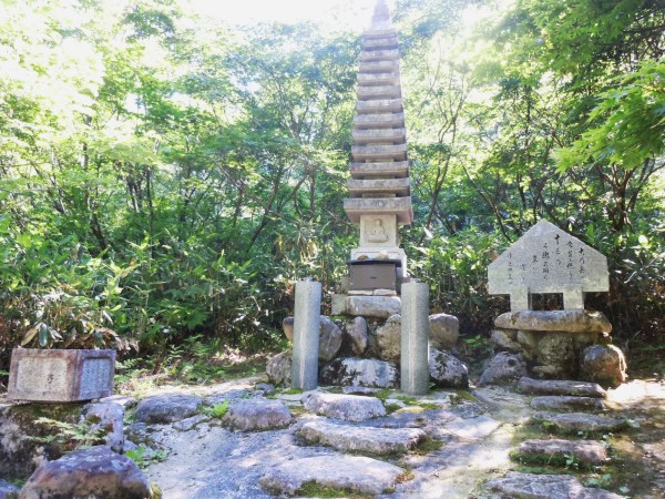 愛知大生遭難の供養塔の前で安全登山を誓う。