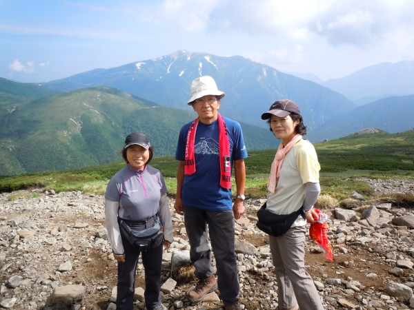 晴れてきました!。薬師岳を背に。カッコイイ〜!