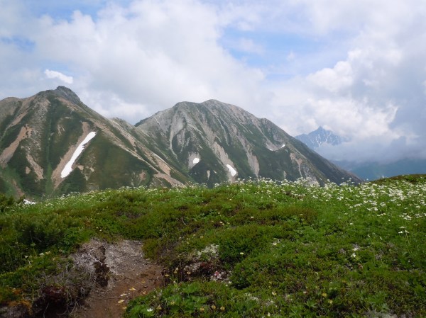 ハクサンイチゲが一面。鷲羽岳が格好いい!