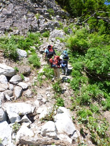 ルンゼ脇の奥又尾根(中畠新道)へ取り付く