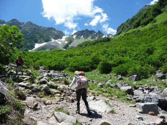 奥穂と涸沢槍が見えてきました