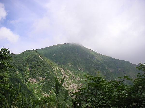 谷川岳の山頂には雲が覆っています